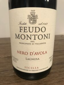 2021 Feudo Montoni Nero d’Avola, “Lagnusa” DOC, Sicily, Italy. (Made with organic grapes) Ruby color; bouquet and complex taste of candied cherry, blackberry, brown spices, anise, and mint. Hints of bitter cocoa, cinnamon, hazelnut, and red plums. Great aftertaste of black figs. For me, a grilled New York strip, medium, with a baked potato says it all!